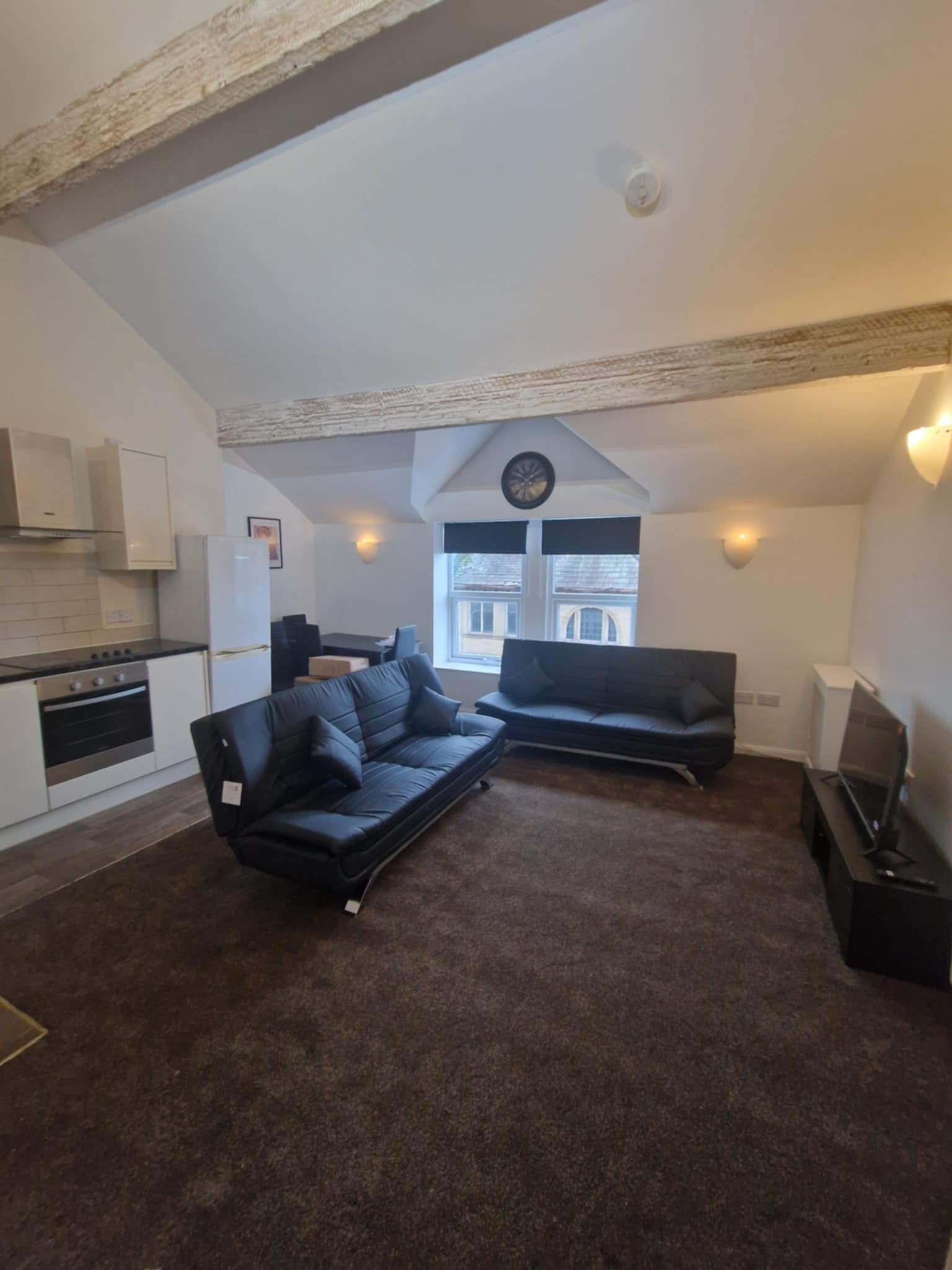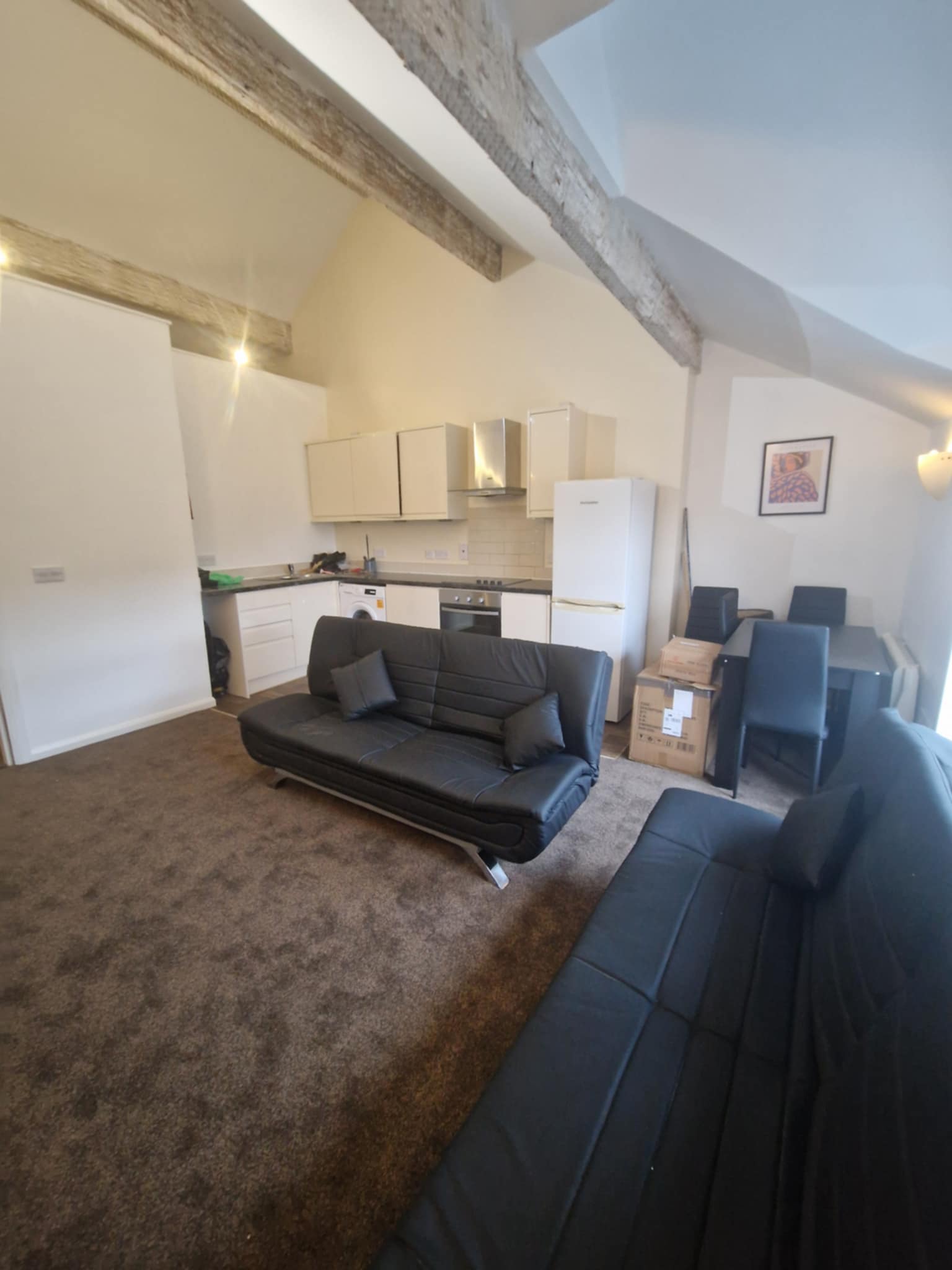 The flat features a contemporary open plan kitchen/diner, creating an ideal space for both relaxing and entertaining. The modern kitchen is fitted with an integrated oven and hob, combining style with everyday functionality.